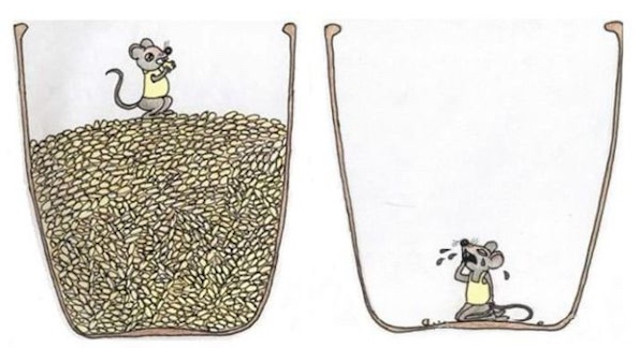 我曾看到過一個《老鼠與米缸》的故事: 一隻老鼠在尋找食物時掉到了半滿的米缸裡,老鼠很高興,它天天吃吃睡睡,日子過得很悠閒,慢慢地米缸裡的米越來越少,老鼠中間也思想過是否及早跳出米缸,但它不捨得米缸裡的米,也放不下這樣悠閒的生活,米缸裡的米吃完了,而這時候根據米缸的高度,老鼠已經跳不出去了。最終老鼠因貪戀一時的享受,賠上了自己生命。